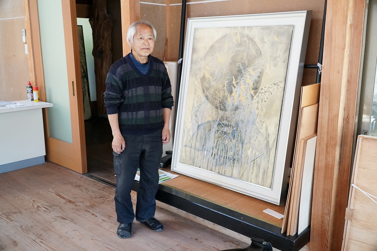 「去年の入選は周りの人からはご祝儀でまぐれと言われたが、今回の入選したことで本物だと認めてくれたのが嬉しい。太陽や月は地球にあるもの全てに必要なものなのでそれをテーマに作品を作っている。他人と同じようなものを描きたくないので自分の個性で勝負していきたい。このシリーズは来年、もう一発勝負する」