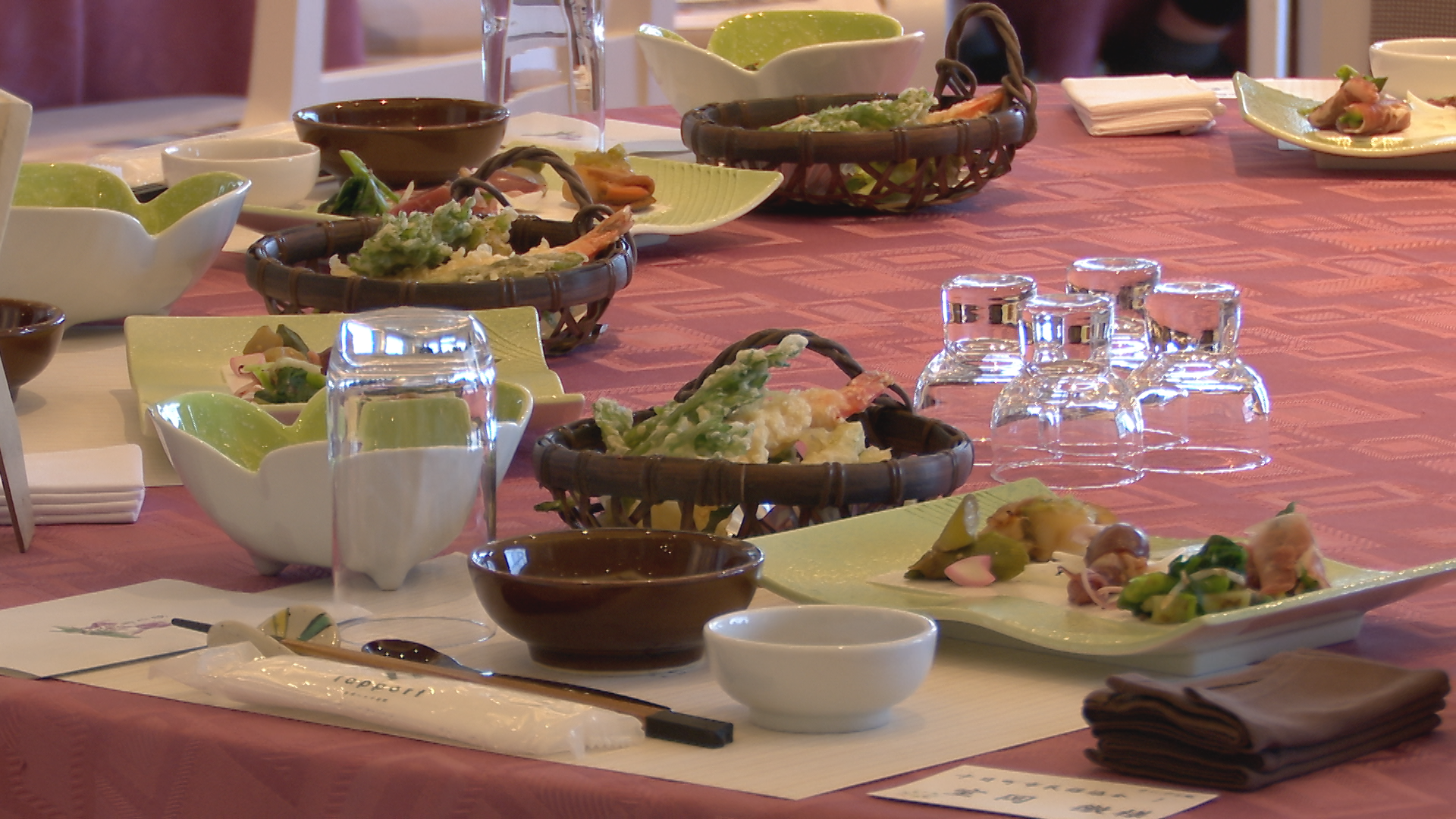 21回目となった今回は、関東から33人、市内から54人のあわせて87人がラポート十日町に集まり、ウドやうるいの天ぷら、ソースにふきのとうを使った肉料理など、合わせて8品目を堪能しました。