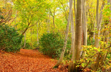 十日町市珠川の「あてま高原リゾート ベルナティオ」にある「あてま森と水辺の教室 ポポラ」。11月は秋が深まり紅葉が美しく…