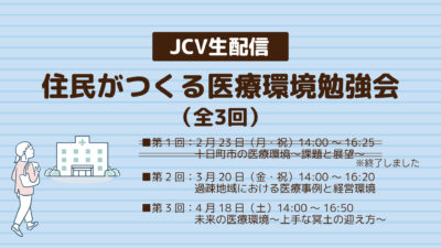 【JCV生配信】住民がつくる医療環境勉強会(第2回)3/20(金・祝)14:00~