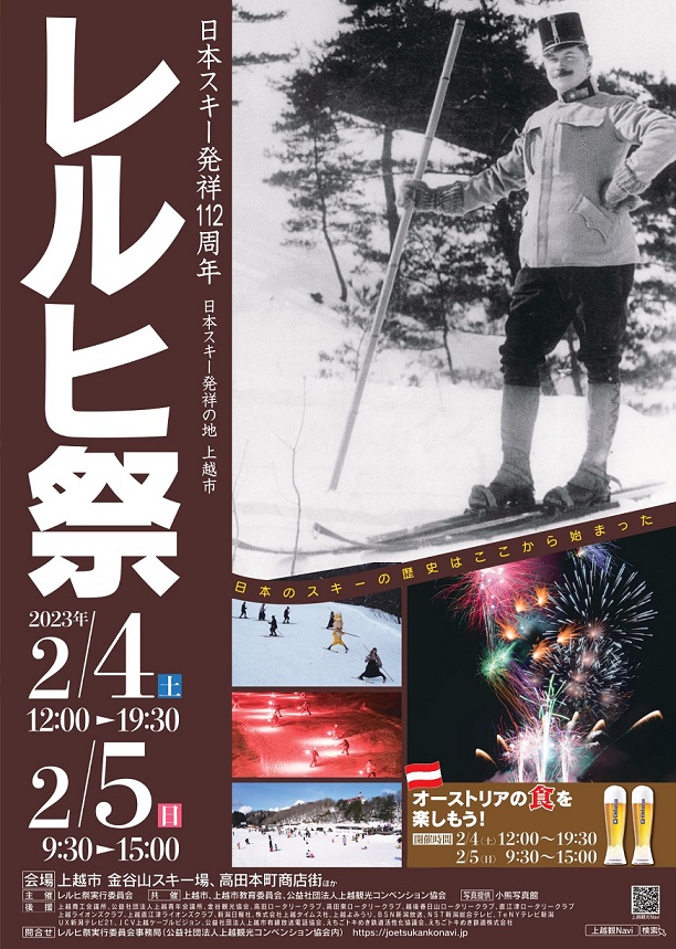 少雪やコロナ禍での中止から、去年完全復活した「レルヒ祭」。金谷山スキー場の積雪量は少なめですが、4日(土)、5日(日)の2日間にかけて、さまざまなイベントが開催されます。また、両日ともに金谷山スキー場リフトが無料開放、日本スキー発祥記念館が入場無料となります。