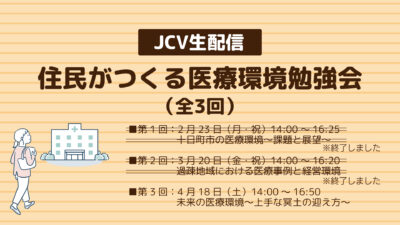 【JCV生配信】住民がつくる医療環境勉強会(第3回)4/18(土)14:00~