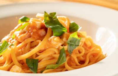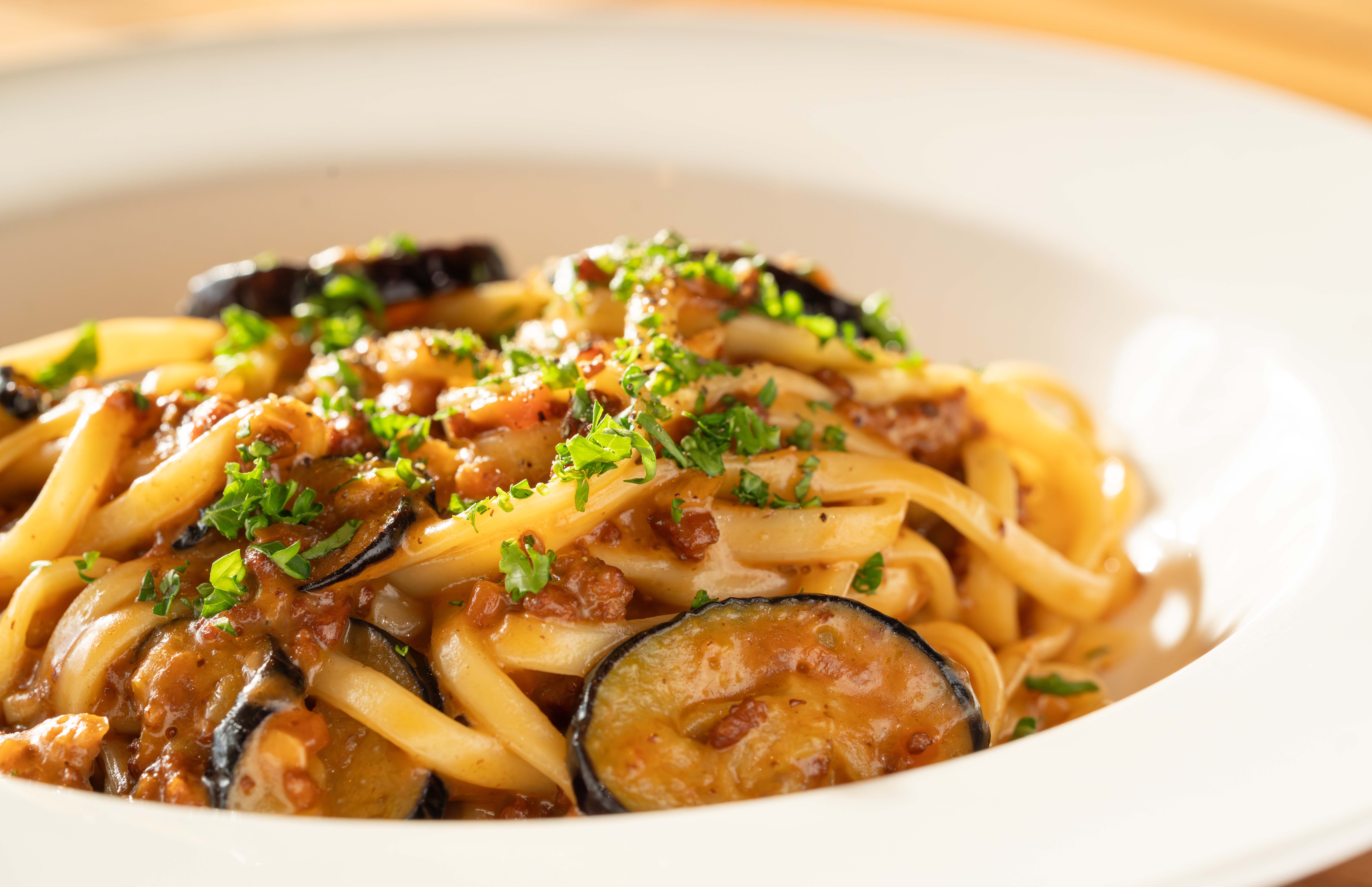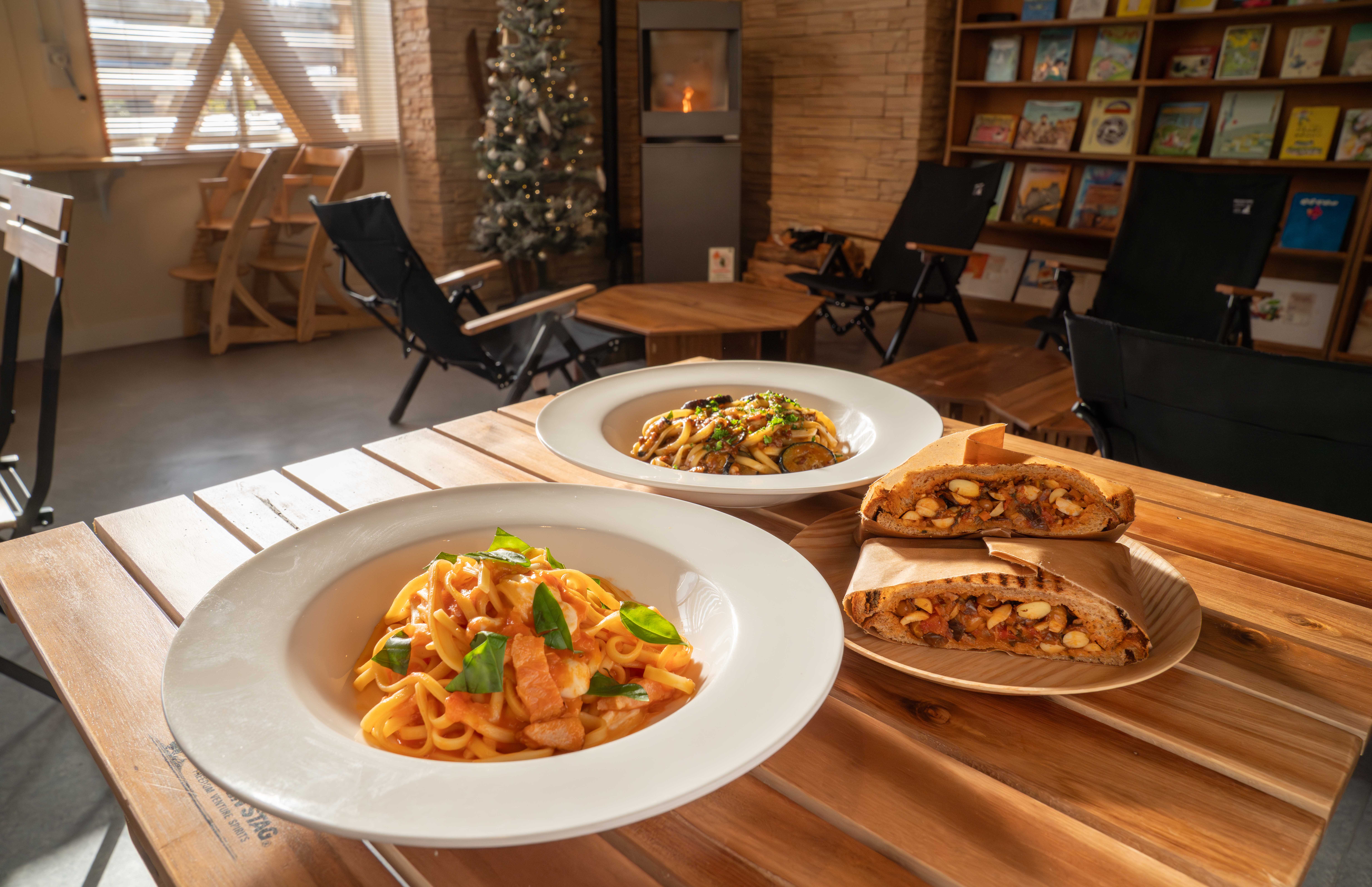 中でも人気となっているのがパスタとホットサンド。パスタは定番メニューの「特製ミートクリーム」。地元野菜と牛肉がたっぷり入ったデミグラスベースのソースがリングイネの生パスタによく絡んで食欲を駆り立てます。パスタは期間限定のメニューも用意しています。