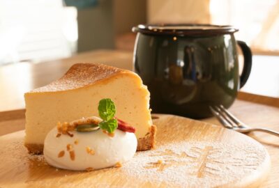 そして、こちらが看板メニューにもなっている特製チーズケーキ「雪チ」。あっさりとした甘さと濃厚なチーズの風味が際立つベイクドチーズケーキです。オープン当初、カフェの看板メニューを考えていた田中さんは、奥様から「チーズケーキを作ってみては?」とのアイデアから試行錯誤を重ね、この「雪チ」を誕生させたそうです。